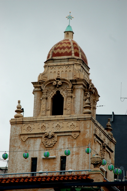 飲食店の建物の塔屋とアーチ部分である。
