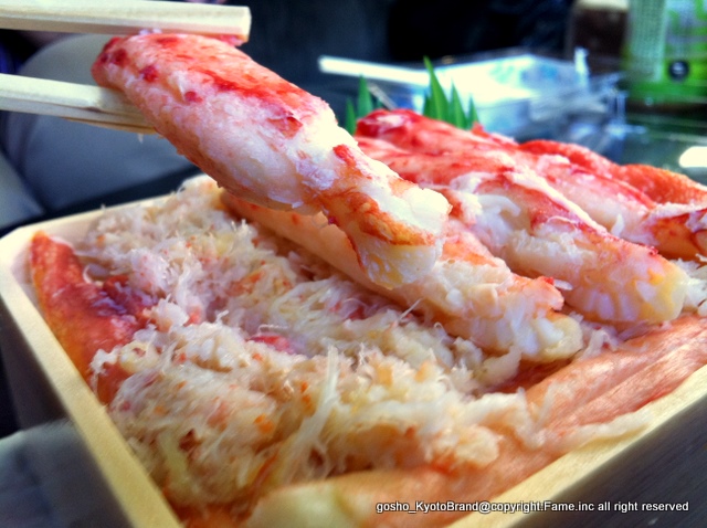しっかりと身のつまった蟹の足がずらりと、その下には蟹のほぐし身が敷かれていた。