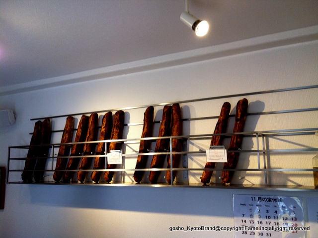 狭めの店内だが、用意された棚には整然と綺麗に自家製パンが並べられている。