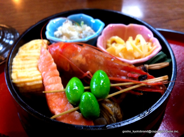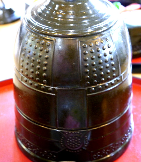 梵鐘を模した三段重の器がテーブルに並んでいた。