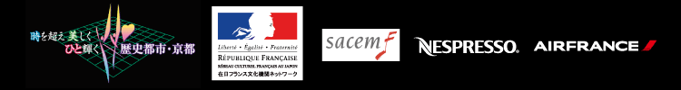 With the collaboration of: Villa Kujoyama, KYOTO CMEX executive committee, CaRTebLaNChe, Kyoto Seika University, Kyoto University of Art and Design, Ritsumeikan University, Kawai Musical Instruments Manufacturing Co., Ltd., FM-KYOTO Inc., Kyoto City Branch of CLAIR, Air France