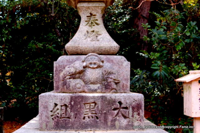 その大黒さんは、三光門向かって右手に、社務所の方へと一列に並ぶ石灯篭の中のひとつである。