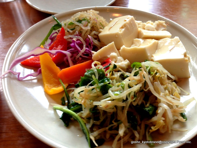 おばんざいの野菜だけで満腹になるほどの品数である。(ビュフェには、その他デザート・パン)