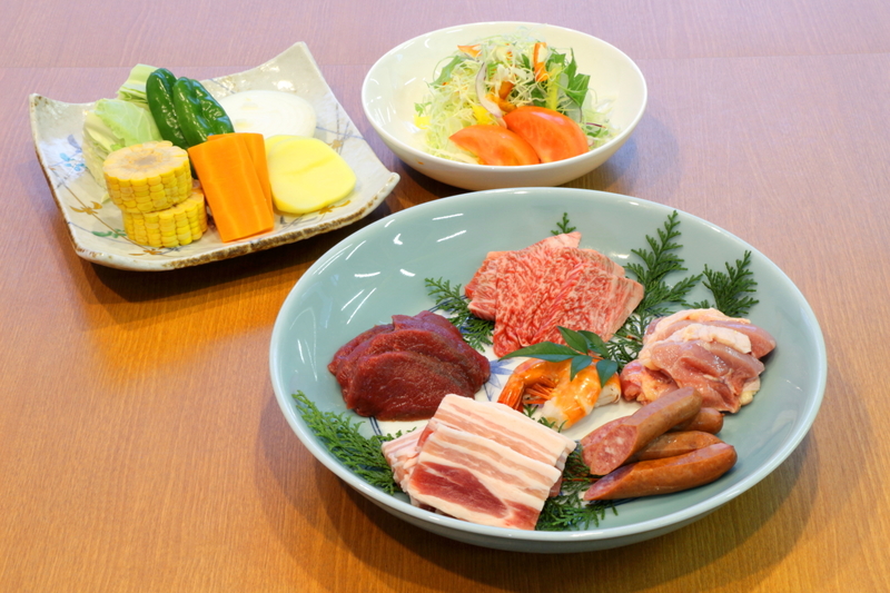 河鹿荘BBQプランメニュー(写真は2名分)