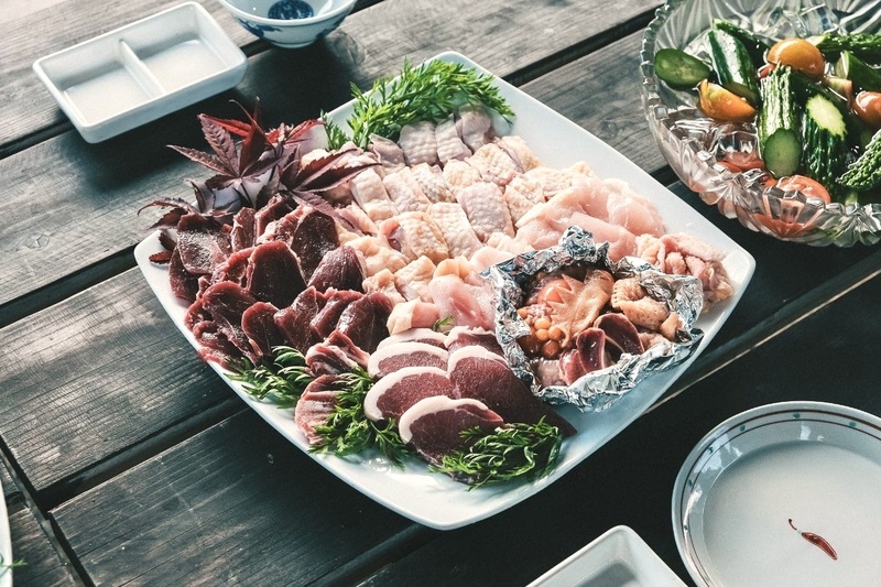 ・地鶏焼BBQプラン:美山の京地鶏セット、カット野菜