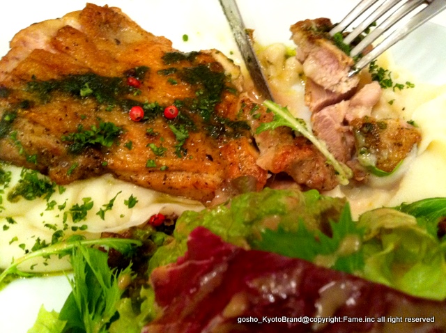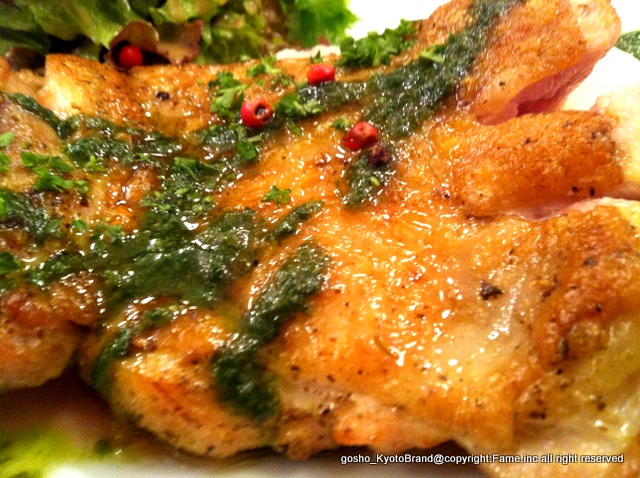 こんがり揚がった若鶏には、バジルソースに粒胡椒が利いて、ボリュームも半端じゃない。