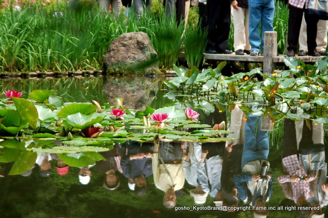 花菖蒲どころか、水面に映るは人だかりばかりだ。