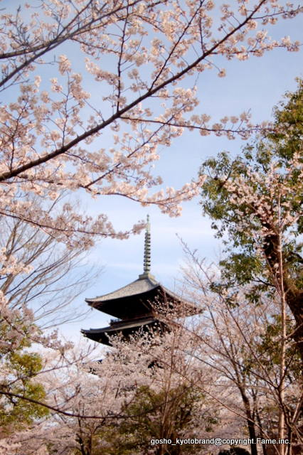 境内にはソメイヨシノや山桜も多くあり、五重塔を包み込むように咲いている。